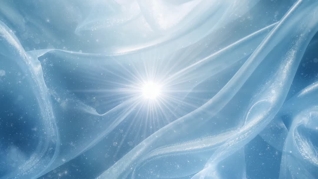 AI Generated Video. Showing radiant starburst emitting rays through flowing translucent silk ribbons in cool blue palette. Featuring soft shimmer, floating particles, layered depth and subtle motion, designed for seamless looping. Evoking calm, futuristic and dreamy mood for technology, wellness, spa, holiday or cosmic projects. Working well for video openers, title sequences, website hero loops, product promos, broadcast graphics and social media reels. Providing clean negative space for text or logo overlays and supporting color grading, slow-motion edits and layered compositing.