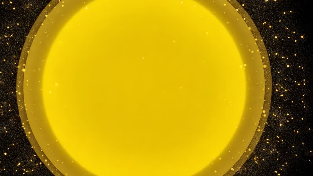 - Radiant Yellow Orb Expansion with Floating Gold Particles