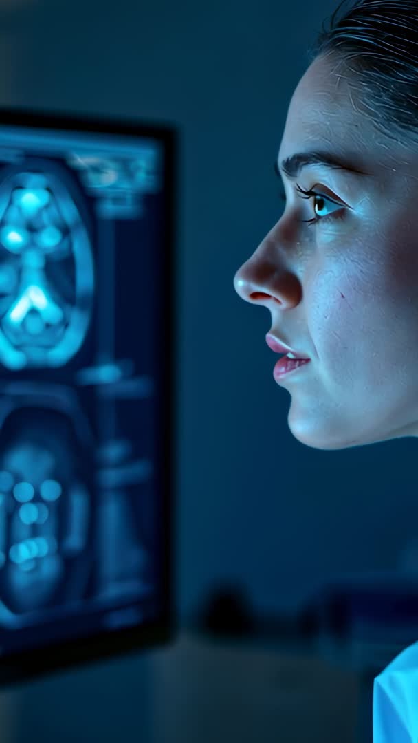 - Radiologist Examining Brain MRI on Monitor, Close-Up Vertical Medical Video for Neuroimaging