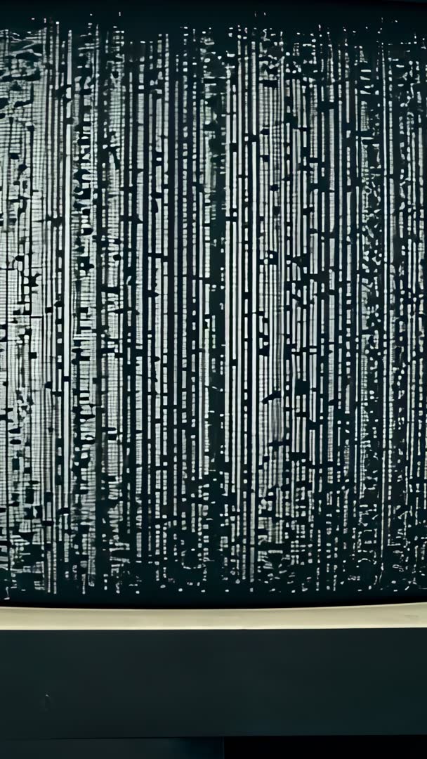 AI Generated Image. Footage showing beige CRT monitor glitching with vertical static, grainy scanlines and audible drive noise from disk slot. Vertical video format working for mobile social platforms such as Instagram Reels and TikTok and for mobile ad creative. Visuals serving as background loop for music videos, VJ performances, film title sequences, horror scenes, technology documentaries and retro commercials. Useful for designers creating retro brand content, album cover art, poster textures, UI glitch overlays and educational content on analog electronics. Color palette featuring muted beige, dark teal and high-contrast black and white patterns, adding vintage mood and tactile grain. Editing tips: looping seamless segment for continuous playback, layering analog hiss track for authenticity, cropping or padding for landscape projects, adjusting contrast and grain to match project tone.