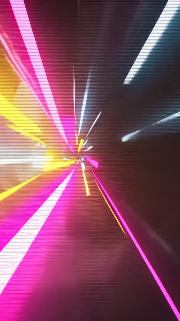 AI Generated Image. Vertical video clip showing man tilting smartphone, pulsing AR beams forming neon tunnel. Bright magenta, yellow, cyan rays streaking toward camera with motion blur and subtle scanline overlay, creating high-energy futuristic atmosphere. Closeup framing leaving generous copy space on right for text, logo, captions. Ideal for AR app demos, tech product promos, concert visuals, music video intros, social media stories, and mobile ads. Clip working well as looping background, hero banner, or transition element; allowing color grading and motion graphics layering for brand integration and promotional animations.