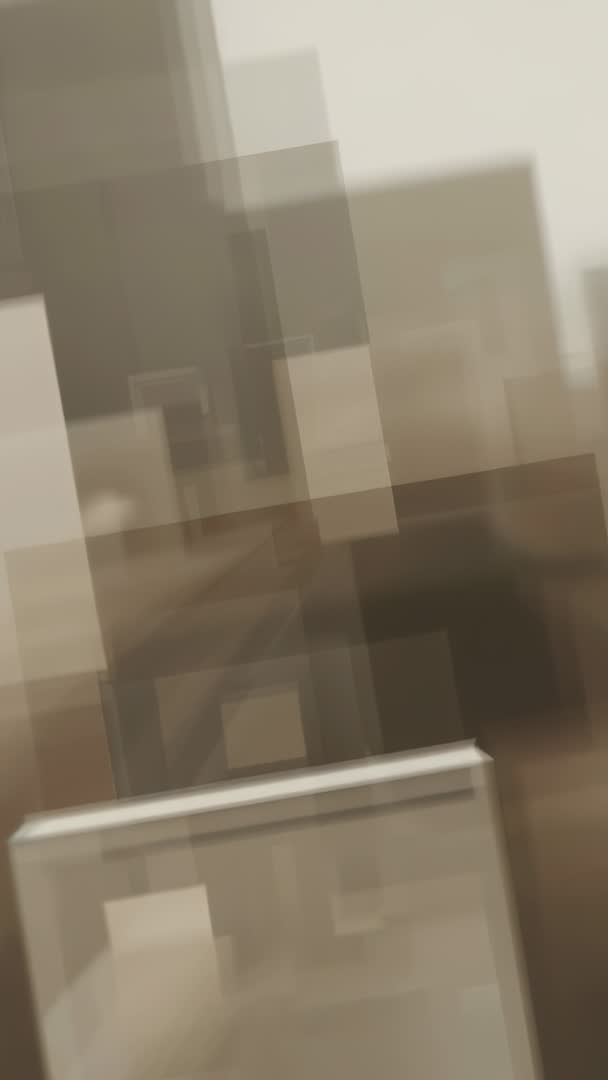 AI Generated Image. Vertical handheld recording showing metal device at lower center while heavy camera shake creating layered rectangular blur and ghosting artifacts across frame. Muted brown and gray tones producing moody abstract atmosphere with indistinct shelves and overlapping forms. Foreground device remaining faintly recognizable while background dissolving into stacked translucent rectangles and motion trails. Serving as background for tech malfunction sequences, experimental film transitions, or advertising with urban gritty aesthetic. Working well for B-roll in documentaries about surveillance, manufacturing, or urban industry, adding authentic camera shake and glitch textures. Offering easy color grading thanks to neutral palette and optimized for vertical social media formats such as story and reel. Clip suiting creative uses including title overlays, transition elements, multimedia installations, and mood-setting visuals for podcasts or music videos.