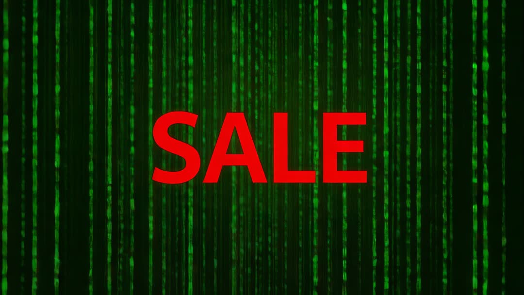 - Red SALE Text Over Falling Green Matrix Code Looping Animation for Cyber Sale