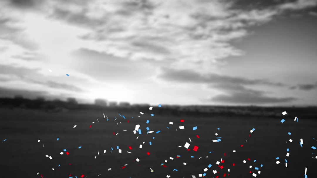 Red, White, and Blue Confetti Against Black and White Sky Video