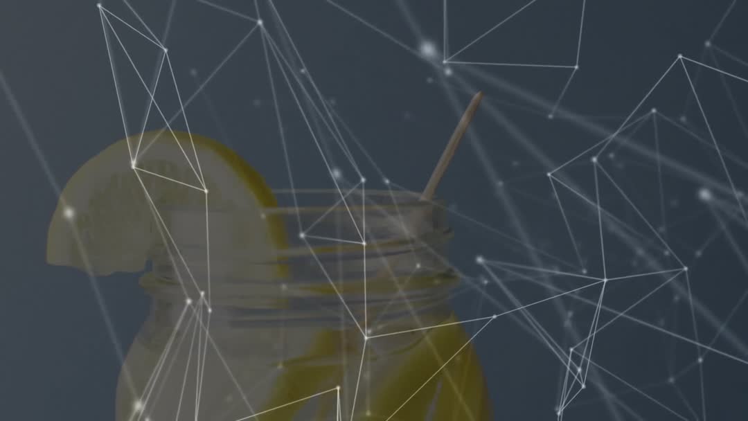 Refreshing Lemon Water In Jar With Digital Network Overlay Video