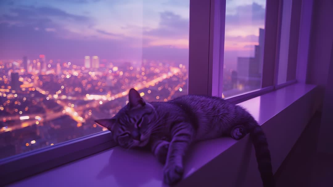 <a target="_blank" href=https://pikwizard.com/video/relaxed-tabby-cat-sleeping-on-window-sill-with-twilight-city-skyline/83501c681a87ece1621448b457050069/>PikWizard</a>