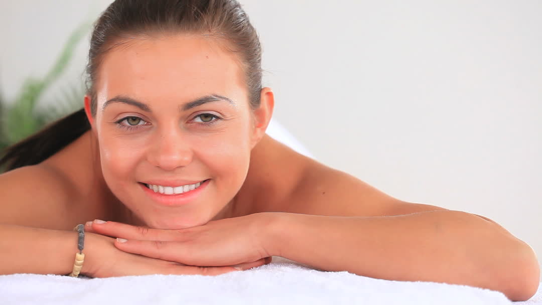 Relaxed Woman Smiling in Spa Setting for Health and Wellness Video
