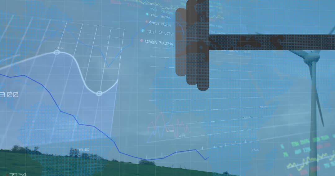Conceptual visualization featuring the intersection of renewable energy technology and data analysis, highlighting the importance of integrating sustainability with modern business operations. Ideal for illustrating reports, articles, or presentations on clean energy, technology trends, and environmental innovations.