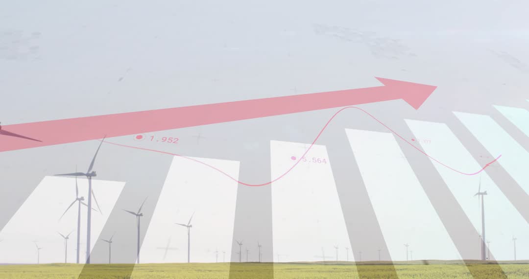 - Renewable Energy Growth Concept with Wind Turbines and Graph Overlay