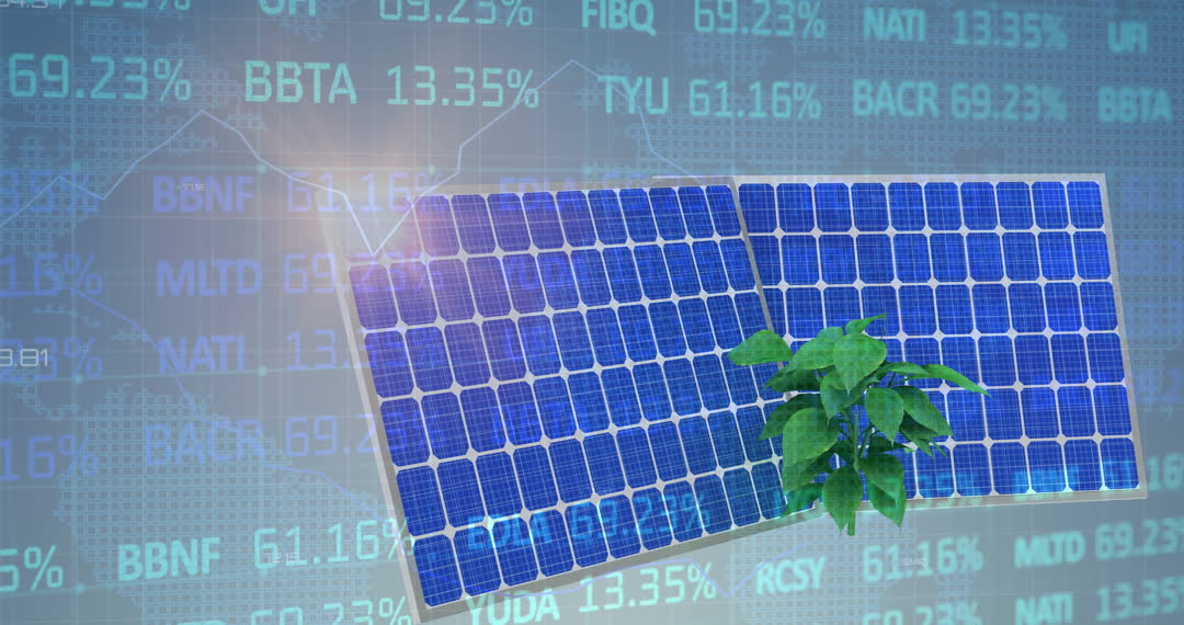 - Renewable Energy Investment Concept with Solar Panels and Financial Data