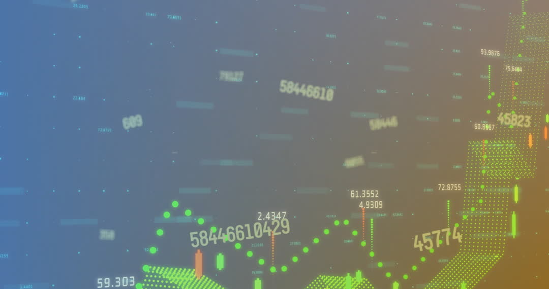Background featuring dynamic chart and numerical elements representing complex financial data and analysis. Useful for illustrating concepts related to digital economy, stock market activities, technological advancements in finance, and business analysis. Ideal for financial presentations, technology-themed websites, and educational materials on economic trends.