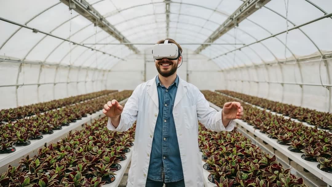 - Researcher Using VR Headset for Innovative Greenhouse Technology