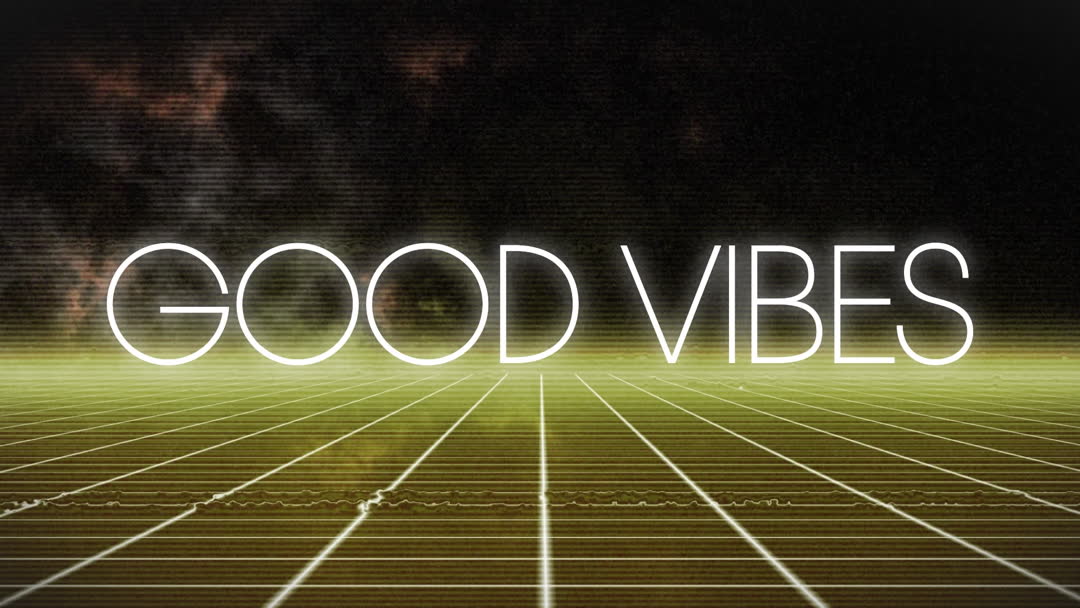 - Retro 80s Style Good Vibes Glowing Grid Text Overlay