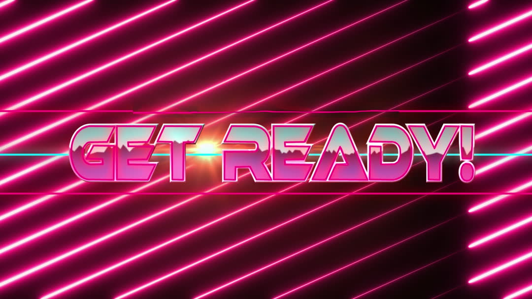- Retro Arcade Style 'Get Ready' Text with Neon Lights