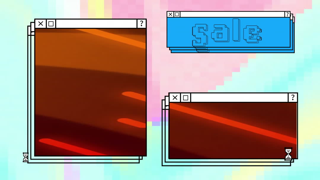 - Retro Cyber Theme with Computer Interface and Sale Text