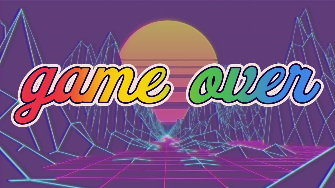 Retro Futuristic Game Over Screen with Neon Landscape Video