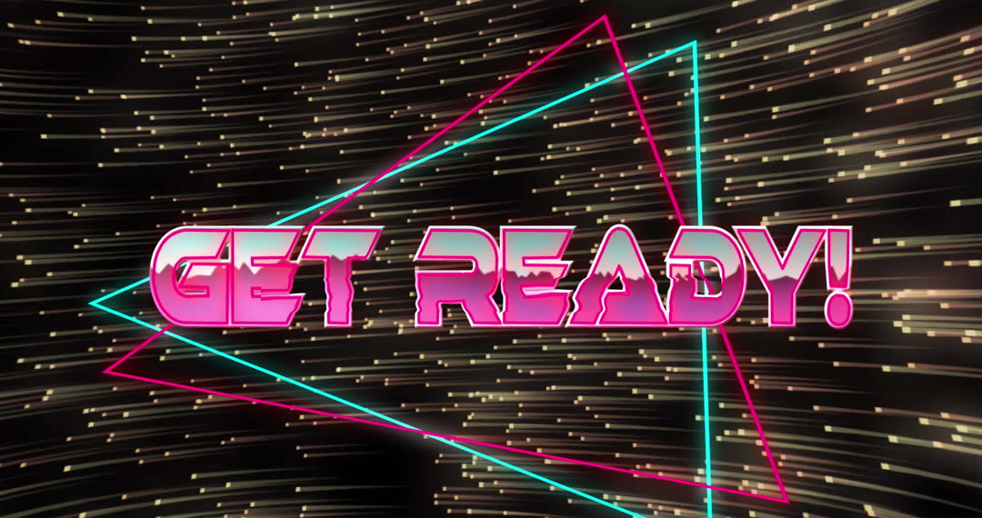 - Retro Futuristic Get Ready Neon Text with Diving Light Trails