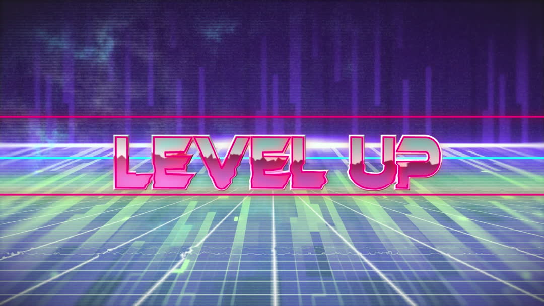 - Retro Futuristic Level Up Themed Graphic with Neon Lights