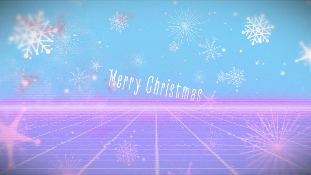 - Retro Futuristic Merry Christmas Animation with Falling Snowflakes