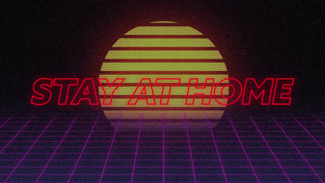 Retro Futuristic Stay at Home Message with Neon Sun Video
