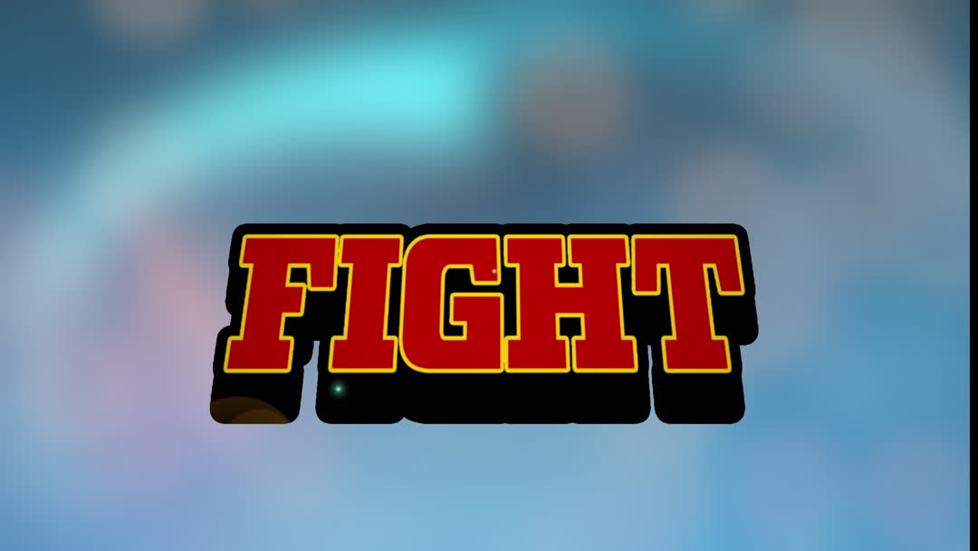 This graphic displays bold, retro-style 'Fight' text set against a blurred sky background, reminiscent of classic video game graphics. Ideal for use in video game promotions, digital marketing, and branding materials related to gaming culture and entertainment. Suitable for creating a vintage gaming atmosphere in design projects or multimedia campaigns.