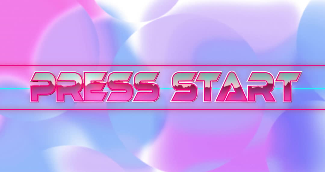 A colorful retro gaming text with 'Press Start' evocates nostalgic video games. Useful for gaming videos, promotional banners or social media backgrounds highlighting classic game themes.