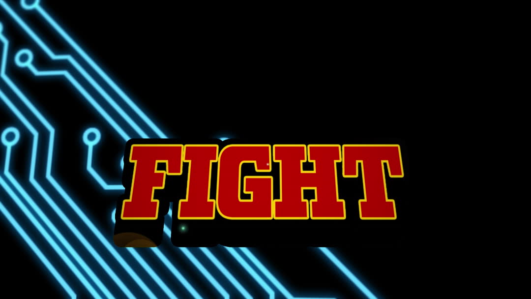 This design combines a retro gaming style 'FIGHT' text over a digital circuit pattern, reflecting a blend of technology and entertainment. It can be used for projects that involve gaming promotions, creative visual designs, or technological entertainment themes. Suitable for backdrop creations in digital media presentations or themed social media posts.