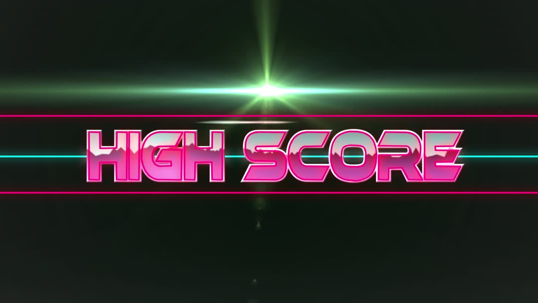 Retro-inspired neon text displaying 'High Score' with vibrant laser light effects. The energetic and bright aesthetic makes it suitable for videos, animations, or social media content related to gaming, retro themes, celebrations of achievements, and digital experiences. It can add a nostalgic or futuristic flair to branding, presentations, and visual storytelling.
