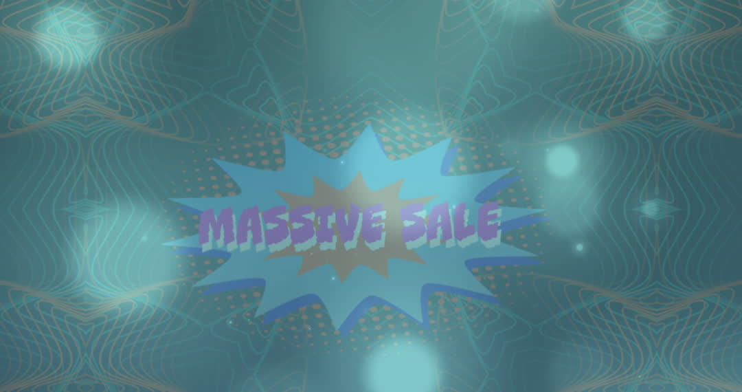 Retro-inspired sale announcement features 'Massive Sale' text on striking kaleidoscopic background. Eye-catching design ideal for digital promotions, social media posts, or retail marketing. Blue hues accentuate the vibrant retro style, attracting customer attention for seasonal discounts or flash sales.