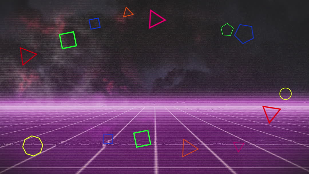 Retro Metaverse Grid with Geometric Shapes and Digital Data Video