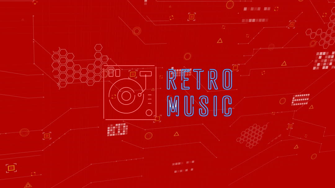 - Retro Music Animation with Digital Graphics on Red Background
