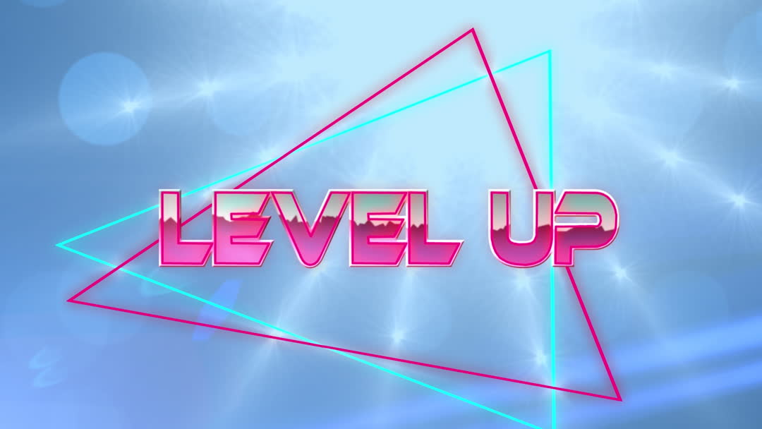 Retro neon style level up concept, ideal for gaming content, digital projects, or nostalgic designs. Perfect for use in multimedia presentations, social media graphics, or video game videory.