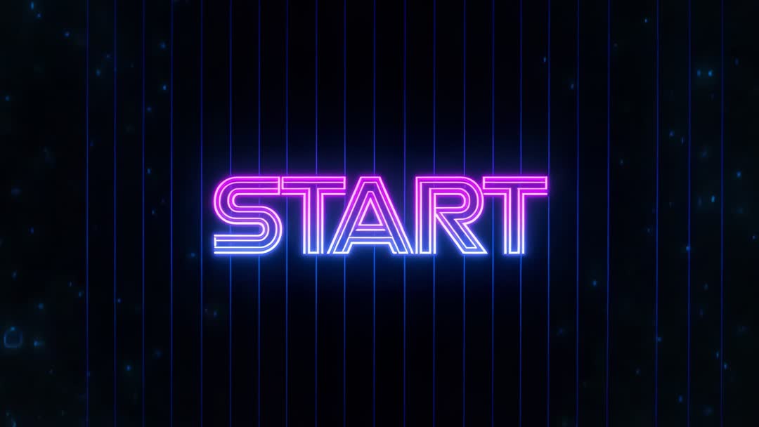 Retro Neon Start Text with Futuristic Grid Background Animation Video