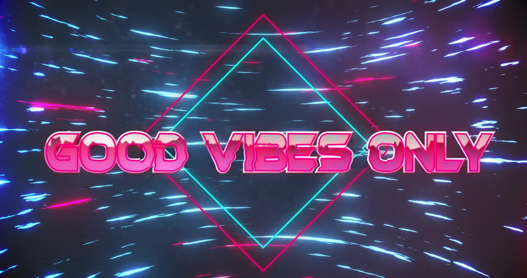 Retro Neon Text Good Vibes Only with Dynamic Background Video