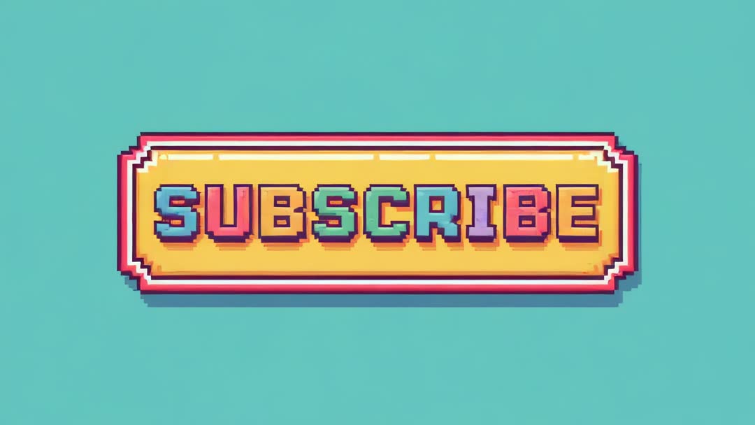AI Generated Image. Bright retro pixel subscribe button animation bouncing and scaling on teal background, showing layered drop shadow and highlight for strong legibility. Clip working as loopable short for YouTube end screens, channel intros, livestream overlays, social posts, and UI prototypes. Design combining 8-bit pixel art with clean minimalist geometry, suiting gaming channels, tech brands, indie developers, and nostalgic campaigns. Color palette featuring warm yellow button, multicolor block letters, and teal negative space, creating bold contrast and modern-retro vibe. Motion language focusing on quick bounce, smooth scale, and subtle highlight flash, drawing attention to call to action. Delivering easy customization for adding link, username, or animated sound effect and exporting as MP4, GIF, Lottie, or sprite sheet for game UI. Recommended uses: video outro, subscribe prompt animation, streaming overlay, tutorial highlight, app onboarding, social ad, website hero CTA, and product demo accent.