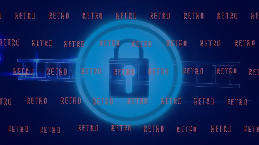 This engaging visual features an animated theme with retro text moving dynamically across a blue background with a central digital padlock symbol. Suitable for illustrating themes related to cybersecurity and technology advancements, this design can be effectively used in videos, presentations, or articles focused on digital security and privacy protection frameworks.