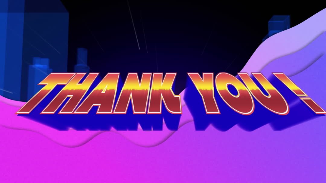 This vibrant graphic captures a retro-style 'Thank You' message with bold colors and abstract shapes. Ideal for social media posts, video animations, and user e-interactions to express gratitude. The dynamic design lends well to digital marketing campaigns and presentations emphasizing appreciation.