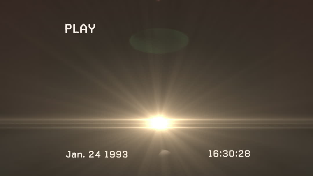 Captures nostalgic appeal of VHS tape effects with a bright burst of light and on-screen VCR displays. Useful for projects wanting a vintage look or exploring themes of time, nostalgia, or retro technology.