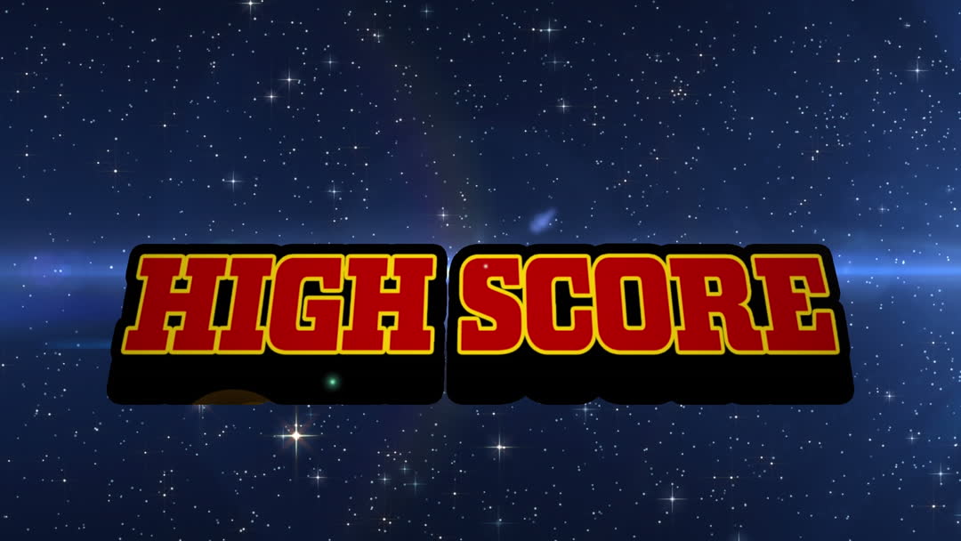 High score text set against a backdrop of twinkling stars evokes the nostalgia of classic arcade gaming. Suitable for use in themes related to gaming events, retro video game promotions, or entertainment media highlighting gaming culture.