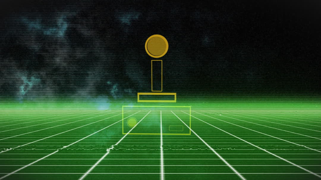 Abstract animation showing a futuristic digital cityscape with geometric shapes set against a neon green grid. Suitable for themes related to technology, innovation, video games, and digital concepts. Ideal for use in presentations, entertainment media, and creative tech projects.