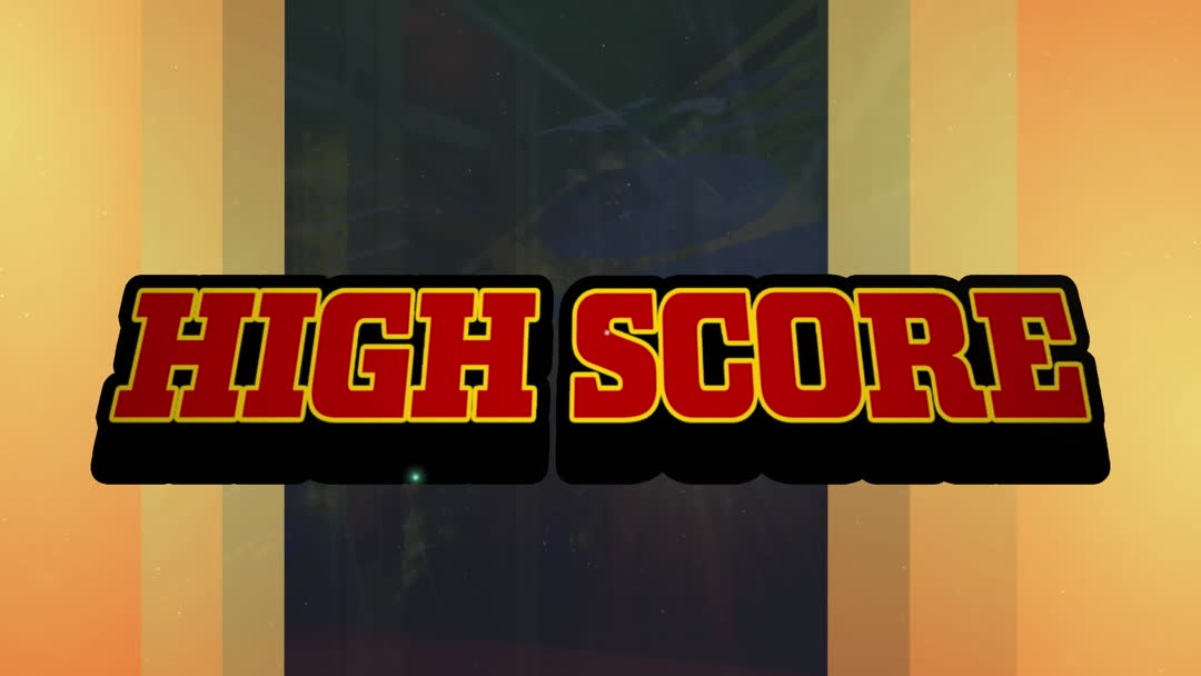 Retro-styled banner featuring 'High Score' text over computer server backdrop. Blending vintage video game aesthetics with modern technological themes. Perfect for gaming events, tech marketing materials, or illustrating achievement in digital contexts.