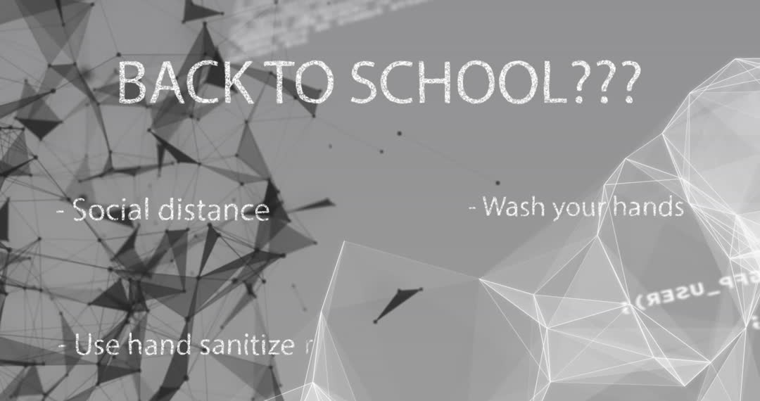 - Returning to School Concept with Safety Precautions on Digital Network Background