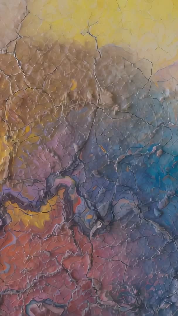 - Revealing cracked paint marbling with shifting multicolor gradient vertical video