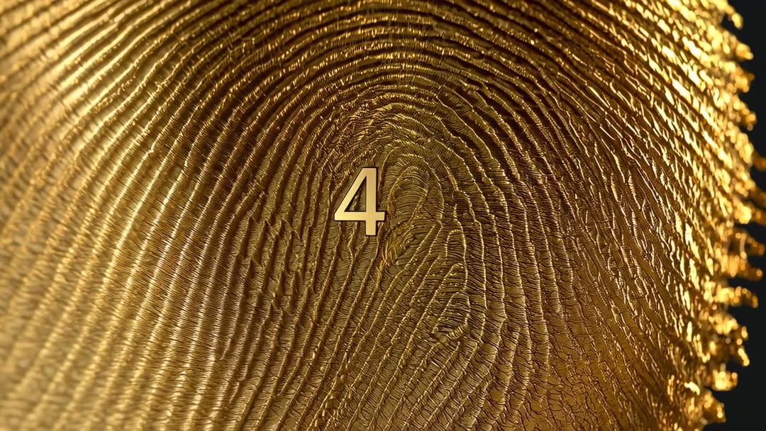 - Revealing gold fingerprint close-up countdown clip with numeral 4
