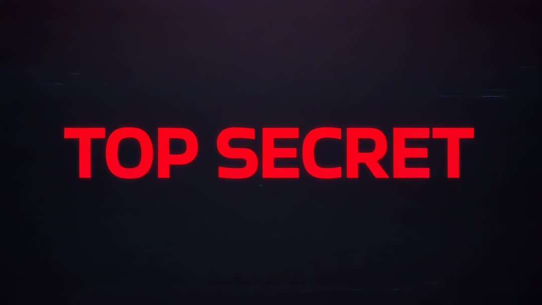 - Revealing TOP SECRET Glitch Title with Red Neon Scanlines and Dark Tech Backdrop