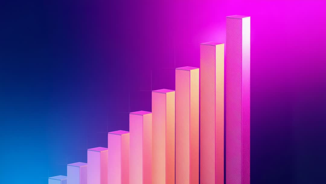 AI Generated Image. Video showing cinematic 3D bar chart rising left to right with tallest bar glowing magenta. Camera panning right and zooming in to emphasize growth while keeping lower bars visible. Background featuring smooth magenta-to-blue gradient and subtle grid lines for depth. Neon lighting and prism-like shading creating futuristic, high-tech mood. Ideal for business presentations, financial reports, startup pitch decks, marketing intros, website hero headers, social media posts, explainer videos, and conference displays. Useful as looping background for digital signage or stage visuals. Customization ideas: color grading, speed adjusting, overlaying data labels, adding voiceover or music. File format suggestions: MP4, MOV, GIF for short loops. Licensing note: AI-generated content.
