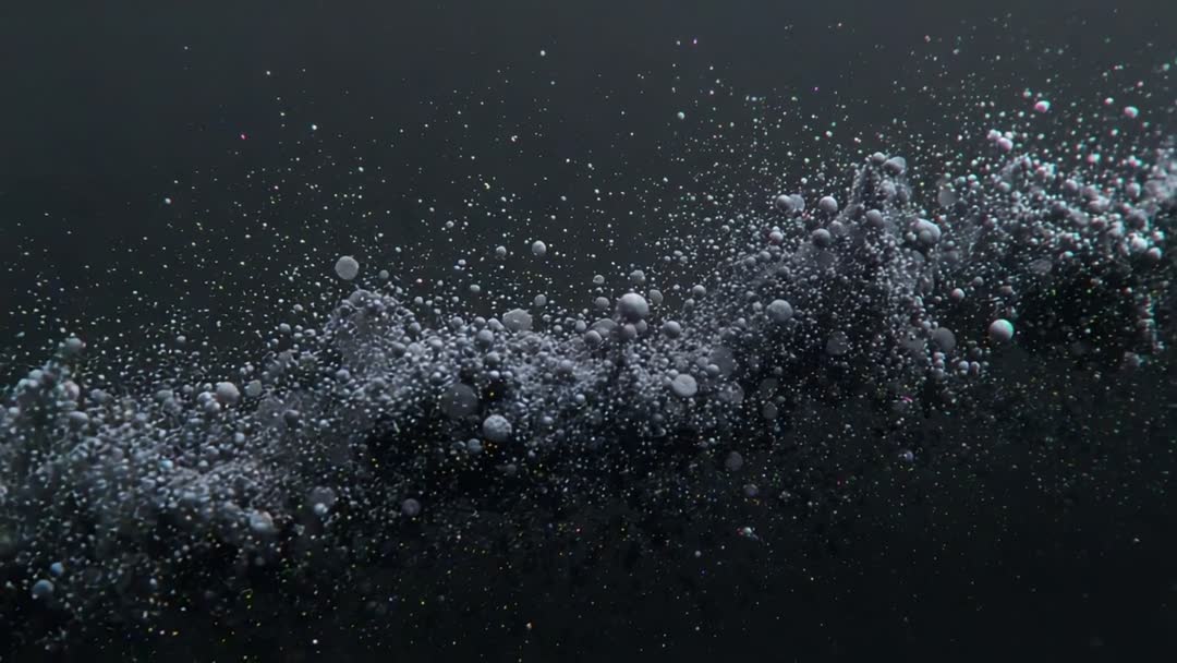 Rising Particle Wave Forming Crest and Shedding Beads in Dark Studio Video