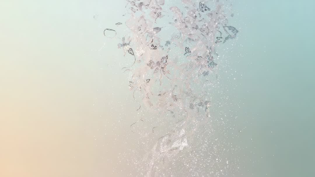 AI Generated Video. Offering serene abstract motion loop showing translucent column of petals rising through bubbly liquid against soft pastel gradient. Featuring delicate floral fragments and sparkling droplets drifting upward, creating ethereal minimalist movement and subtle texture. Suited for website hero backgrounds, brand commercials for beauty and skincare, fashion promo graphics, meditation app visuals, social media reels, and luxury packaging animations. Supporting color grading and text or logo overlay, pairing well with ambient soundtrack or gentle chimes. Delivering modern, elegant visual language for campaigns seeking calm, dreamy, premium aesthetic.