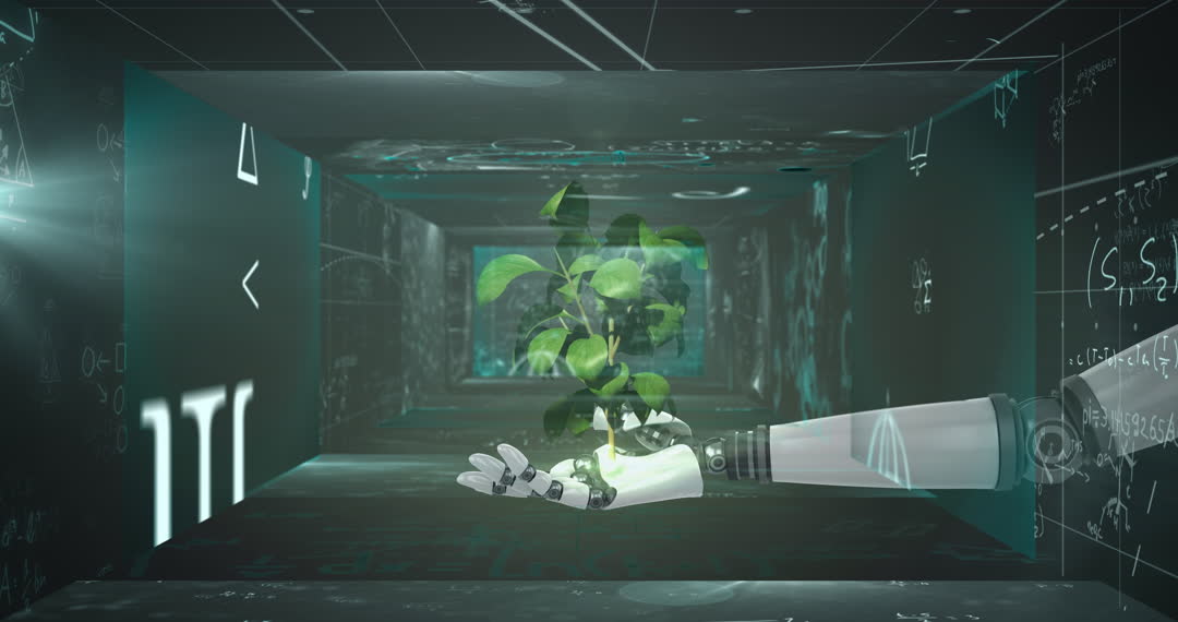- Robotic Arm Nurturing Plant Amidst Digital Equations
