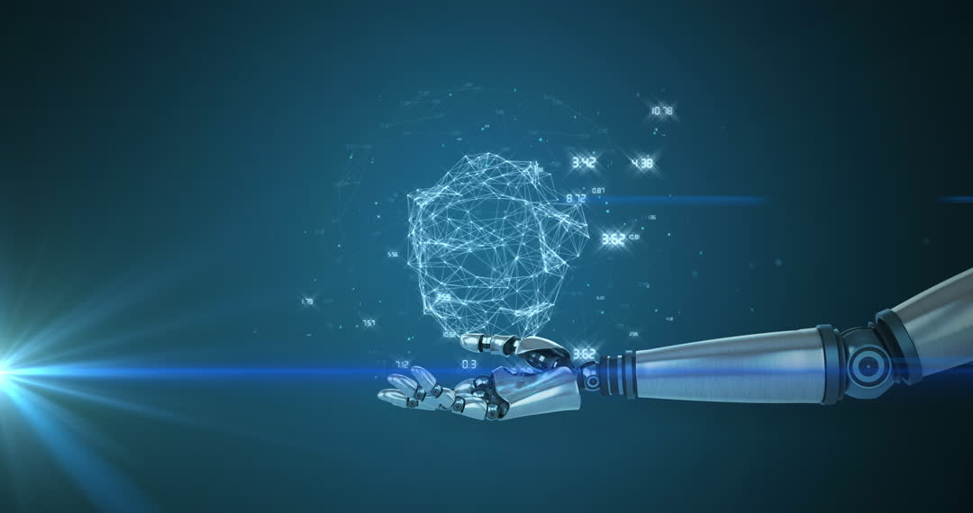 - Robotic Hand with Futuristic Digital Interface Hologram